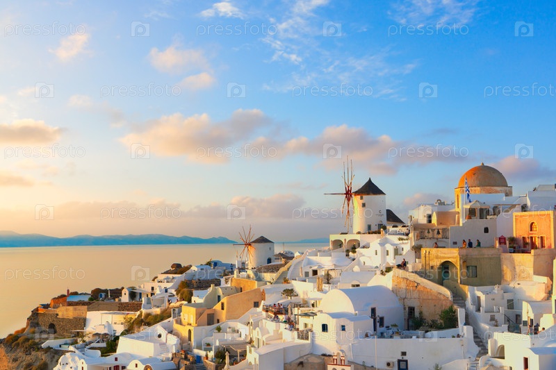 Закат над деревней Оя, остров Санторини, Греция