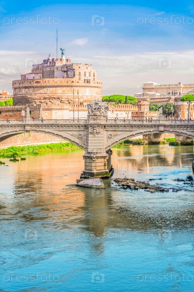 Замок святого Анджело через реку Тибр летом, Рим, Италия