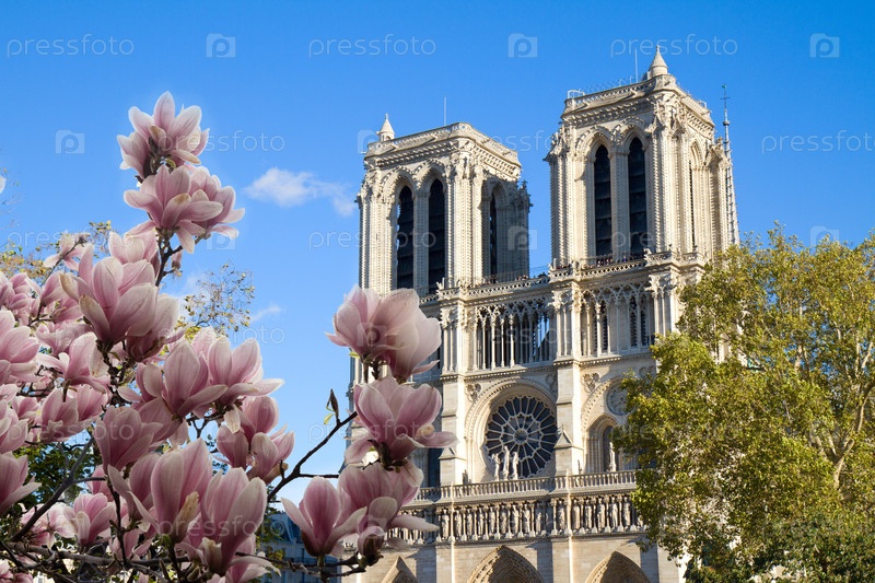 Фасад собора Нотр-Дам, боковой вид, Париж, Франция