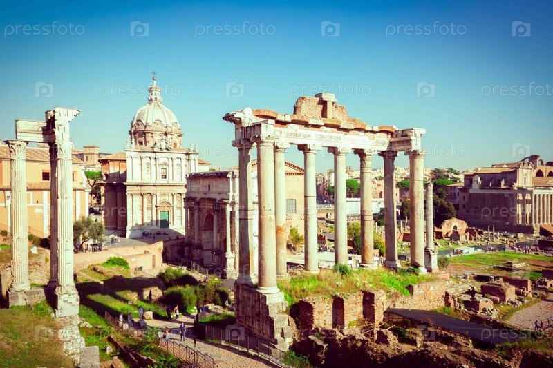 - Римские руины Форума в Риме в солнечный день, Италия