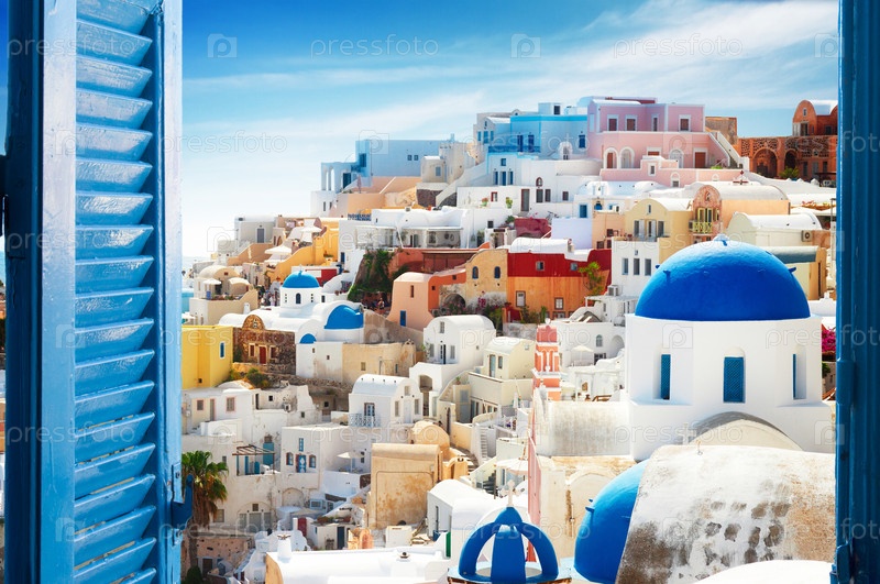 Пейзаж Оиа, традиционная греческая деревня Санторини, Греция, тонизированный город