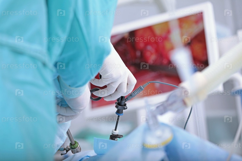Лапароскопические инструменты в руках хирурга. операции на внутренних органах. минимально инвазивная хирургия. современный хирургический метод