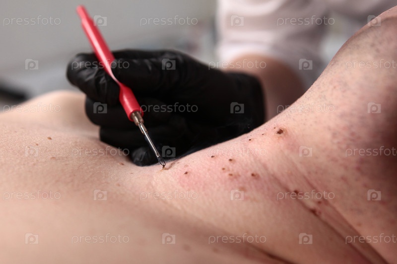 Косметолог удаляет большое количество папиллом на шее мужчины Доброкачественное образование на коже Понятие здоровой кожи Близкий план Мужская косметология