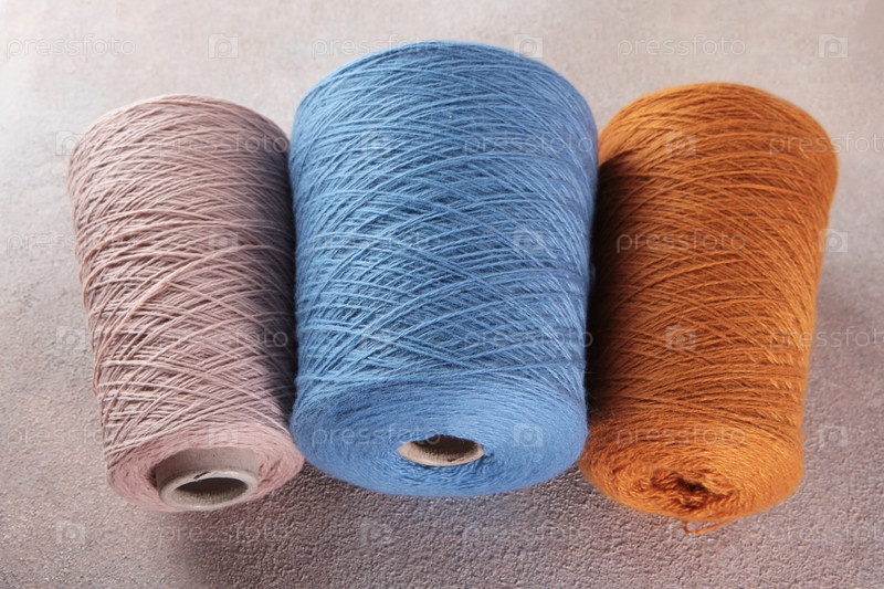 Шерстяная пряжа для ручного вязания. Трикотаж или вязывание. Ручная работа. Игла на катушках. Концепция хобби и ремесел. Многоцветные шерстные пряжи