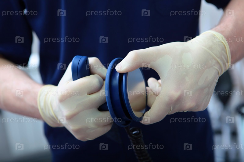 Электроды разряда в руках врача интенсивной терапии. реанимация. дефибриллятор в руках реаниматора. спасение жизни пациента. электроимпульсная терапия сердечных аритмий