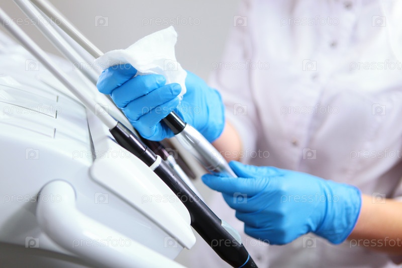 Процедура очистки в современной стоматологической клинике после приема пациента. Безопасность пациентов при современных медицинских условиях. Концепция чистоты и здоровья. Дезинфекция и уборка в стоматологическом кабинете