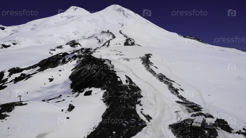 Вид с воздуха на заснеженную вершину горы Эльбрус