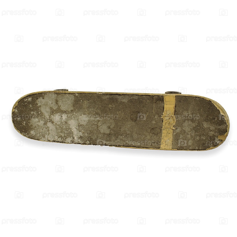Проветриваемая палуба скейтборда, которая демонстрирует деревенскую поверхность вместе со изношенной лентой сцепления от тяжелого использования в течение долгого времени
