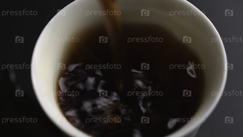 Увлекательный вид, демонстрирующий свежесваренный кофе, элегантно наливающийся в чашку от профессионального бариста