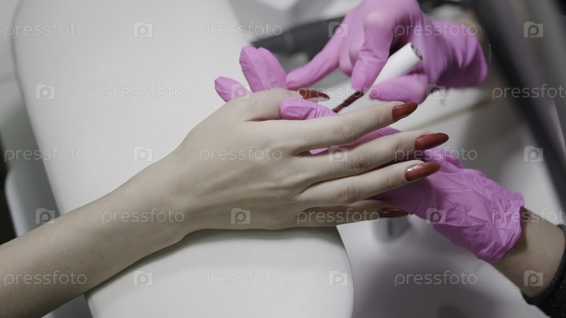 Элегантный уход за ногтями, спокойная спа-среда, где женщина получает свои ногти профессионально сформированные и отполированные