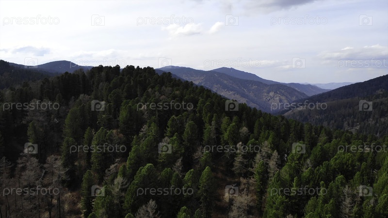 Летающий над бесконечным зеленым лесом и горами