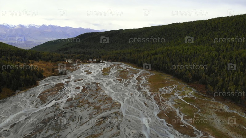 Плетенная река течет через осенний лесный пейзаж