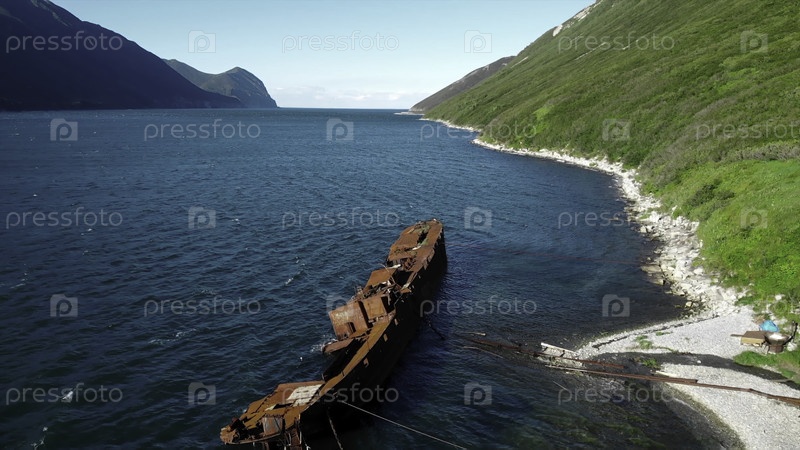 Вид с воздуха кораблекрушения, застрявшего на берегу.СМИ