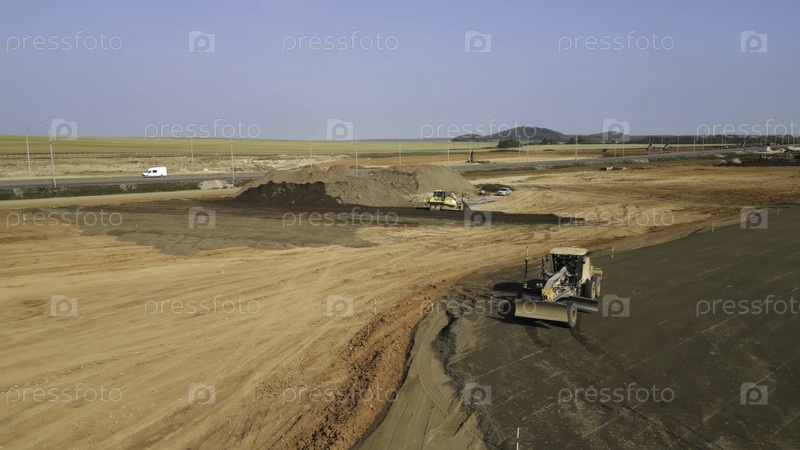 Грейдер выровняет землю на строительной площадке