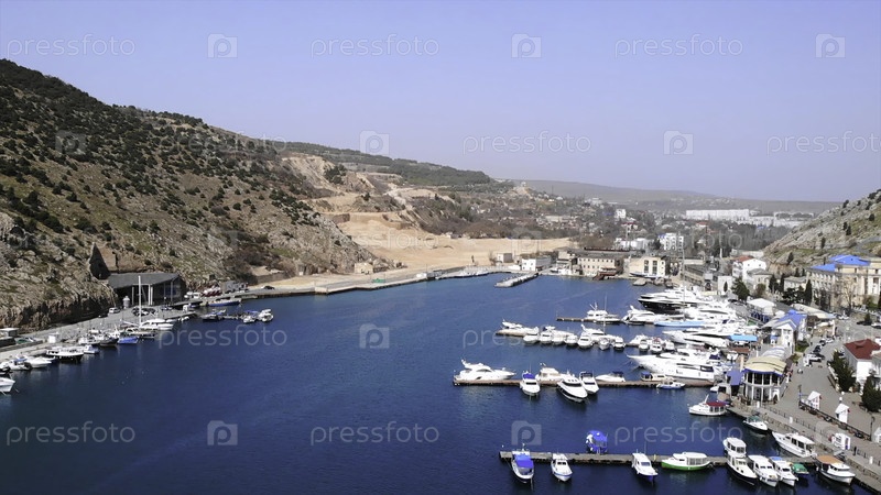 Вид с воздуха на гавань залива Балаклавы с яхтами.СМИ