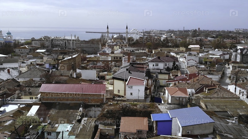 Вид с воздуха старого города Евпатории и мечети Джума Джами