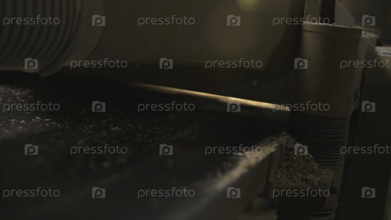 Ключевое изображение операции шлифования, накопление мелкого пиломатериала на шлифовальном барабане и рабочем пространстве