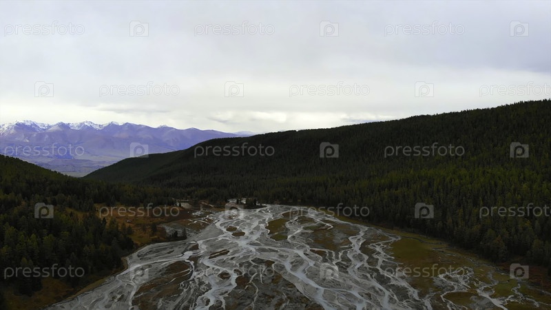 Плетенная река течет через горную долину.Медиа