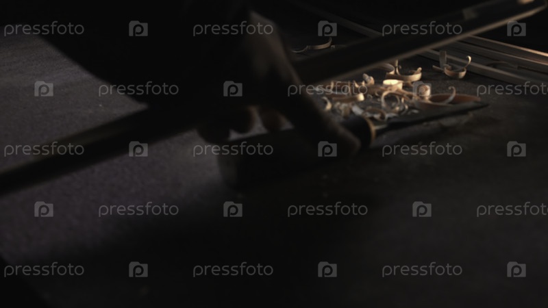 Плотник чистит деревянные лопатки кистью в мастерской.СМИ