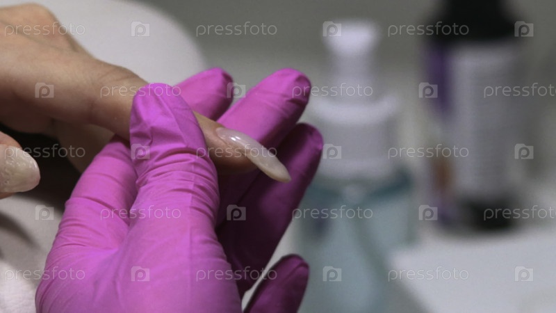 Подробный технический осмотр ногтей, техник проводит точную инспекцию ногтей перед окончательным стилированием
