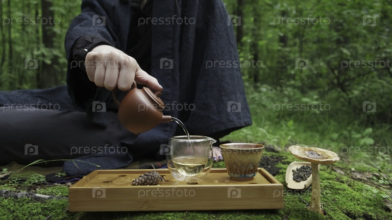 Наслаждайтесь безмятежной чайной церемонией в тихом лесу, окруженном природой для отдыха