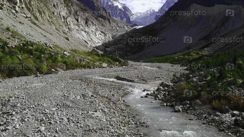 Горная река, протекающая через скалистую долину