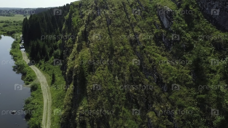 Наслаждайтесь захватывающим видом на живописные пейзажи у скал рядом с спокойной рекой, подчеркивая красоту природы