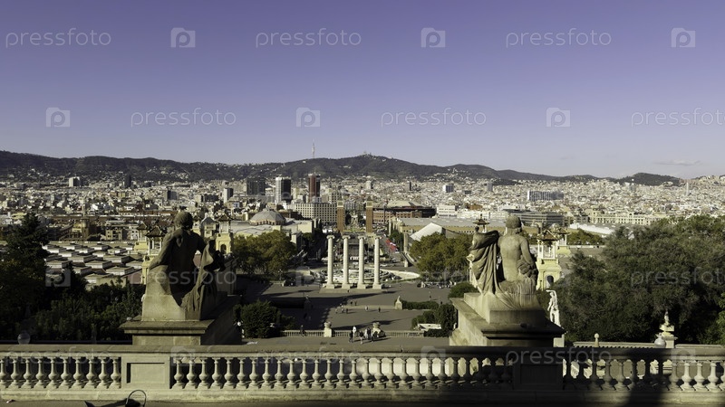 Панорамный вид городского пейзажа Барселоны из Национального художественного музея Каталонии