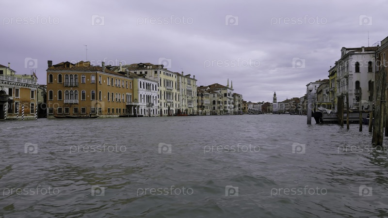 Большой канал в Венеции, Италия, показывающий традиционные красочные здания и облачное небо