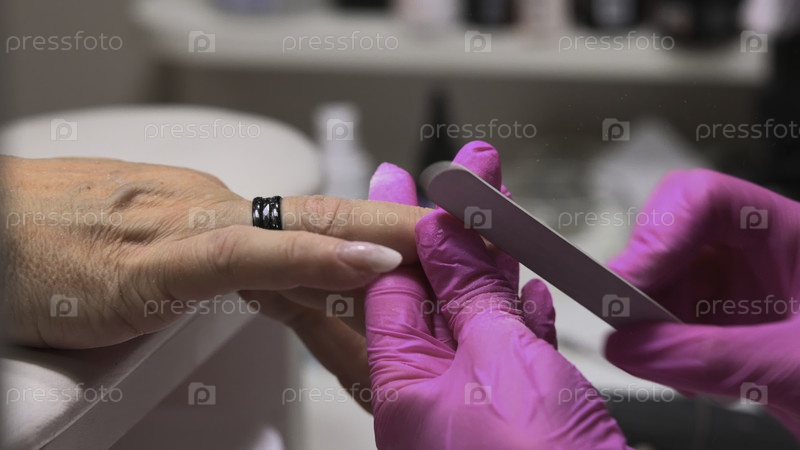 Процесс маникюра с тщательным оформлением, профессиональное обслуживание ногтей с использованием мягкого движения и чистого рабочего пространства