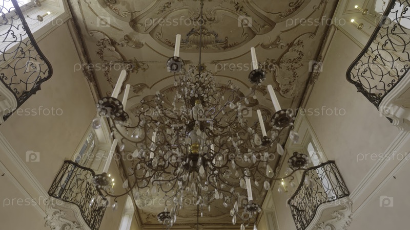 Элегантные потолочные фрески и кристаллическая люстра в историческом здании