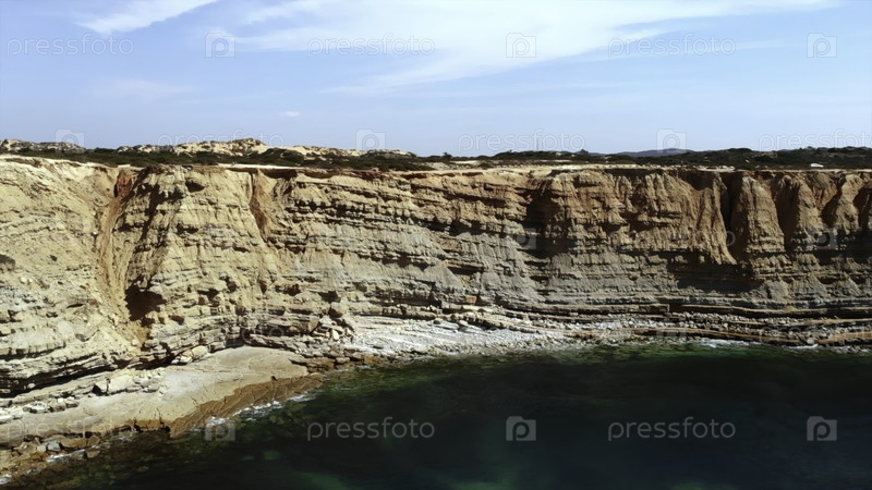 Известняковая скала с безмятежным заливом, возвышенный известняковый обрыв с видом на тихое зеленое водное окружение