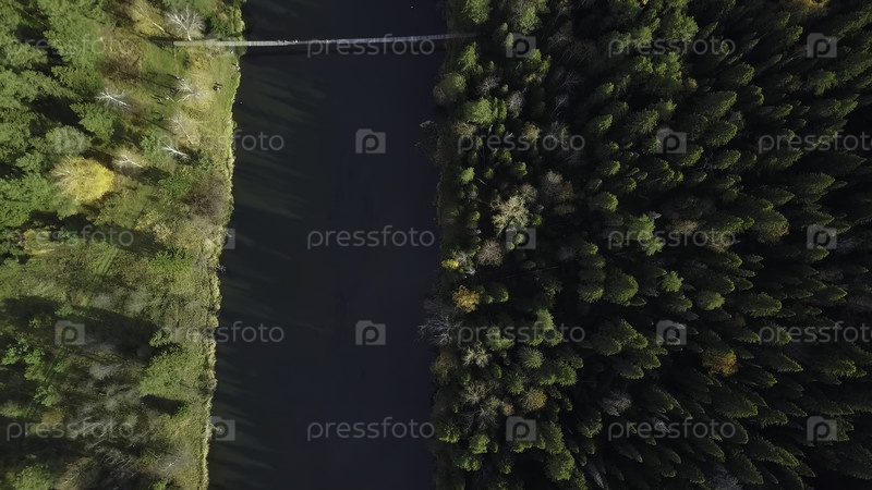 Вид с воздуха на безмятежный лес и речный пейзаж, захваченный сверху, действительно прекрасен