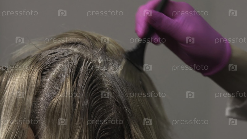Применение цвета на белых волосах, детальное расчесывание создает естественно выглядящее покрытие цветом волос