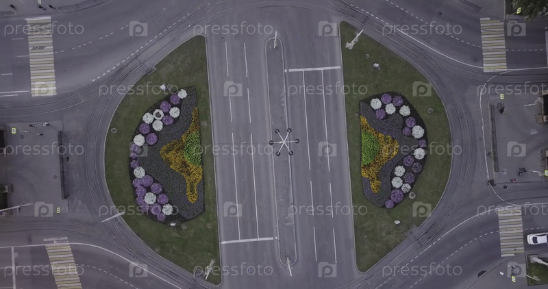 Будьте свидетелями захватывающей воздушной смотровой точки, демонстрирующей круговоротное кольцо, украшенное потрясающими яркими клумбами