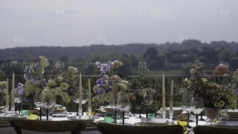 Элегантный свадебный стол с видом на живописную сельскую местность