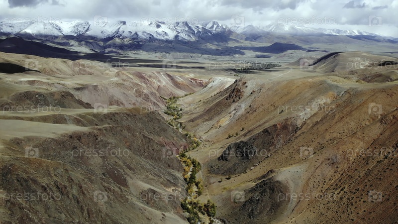 Долина Кызыл-Чин показывает осенние цвета и заснеженные горы.СМИ