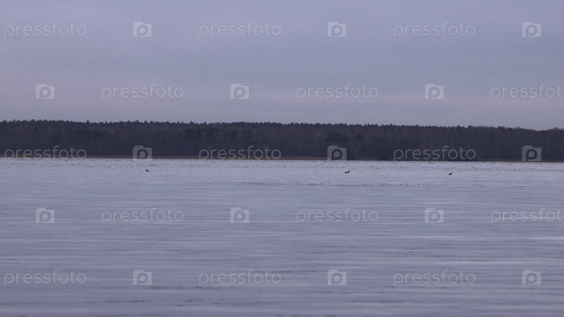 Спокойное ледяное спокойствие, тихое ледяное пространство с отдаленной линией деревьев и нежным пастельным освещением для расслабления