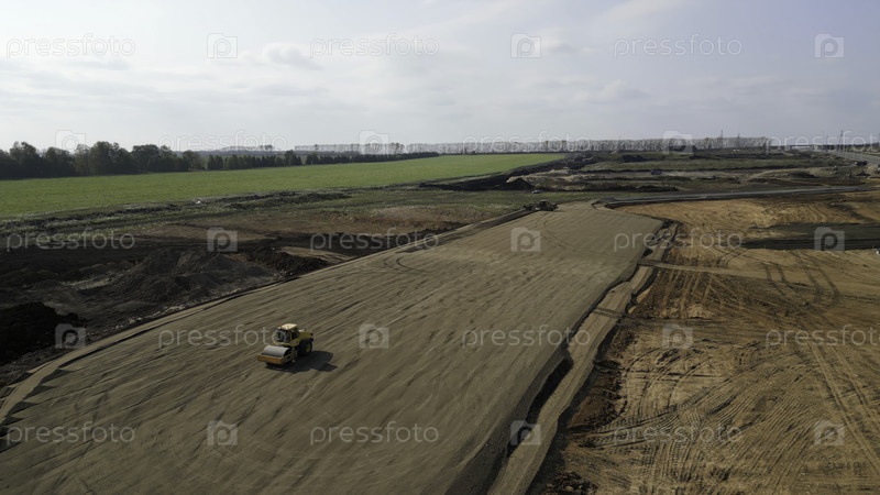 Дорожный ролик, сглаживающий землю на строительной площадке