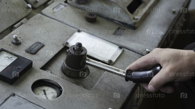 Оператор поворачивает рычаг управления старыми промышленными машинами