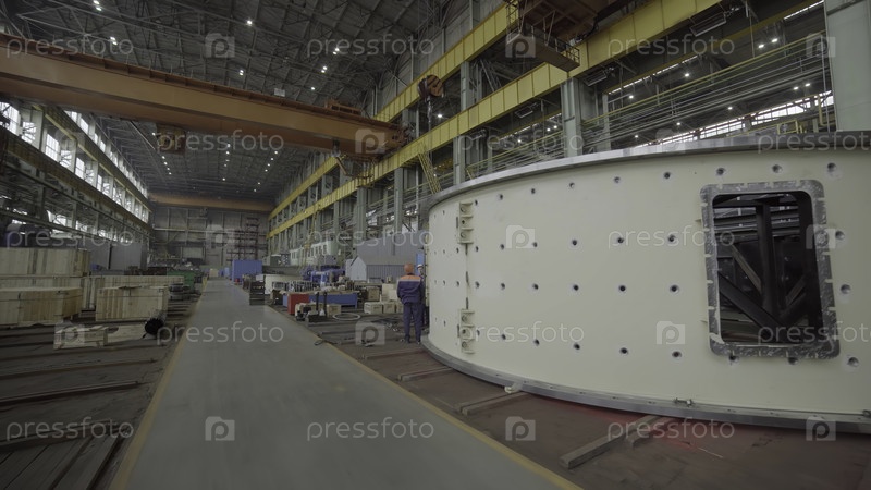 Просторное промышленное производственное предприятие с большим количеством машин и основным оборудованием для производства