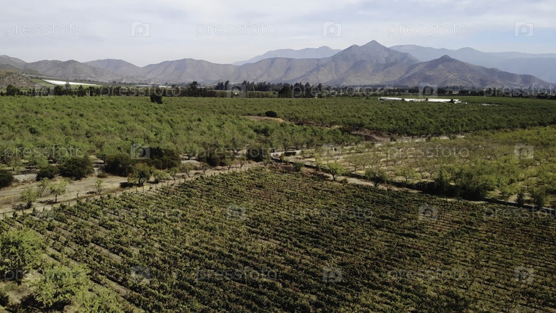 Вид с воздуха на виноградник сельское хозяйство плантация с горами