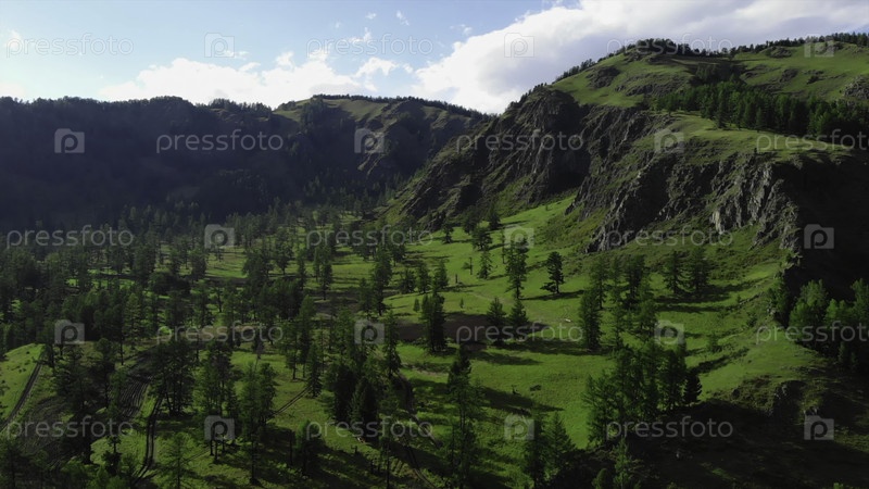 Панорама пышной долины, разворачивающаяся под величественными скалами