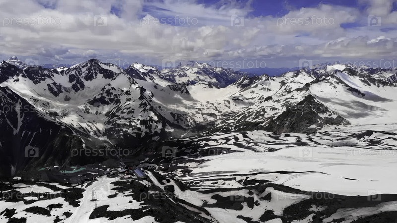 Драматические облака движутся над снежным горным хребтом
