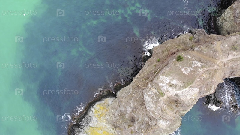 Вид с воздуха скалистого побережья с бирюзовой водой.Медиа