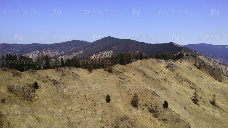 Камера, приближающаяся к горному хребту с редкой растительностью