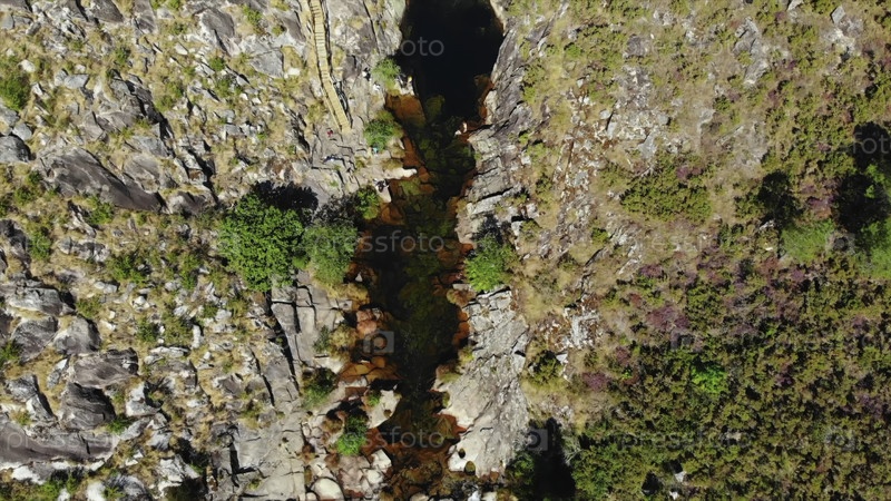Вид с воздуха на водопад реки Каньон в горном ландшафте