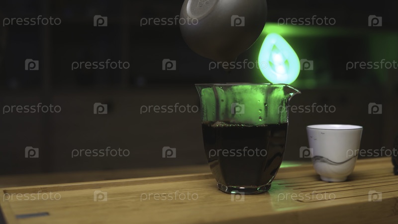 Умелая рука наливает ароматный чай из ремесленного чайника в стеклянную чашку, демонстрируя искусство приготовления пива