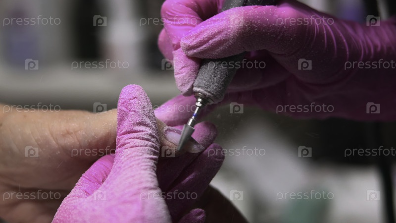 Маникюрщик-эксперт тщательно изображает ногти, используя ротационный инструмент для безупречной отделки