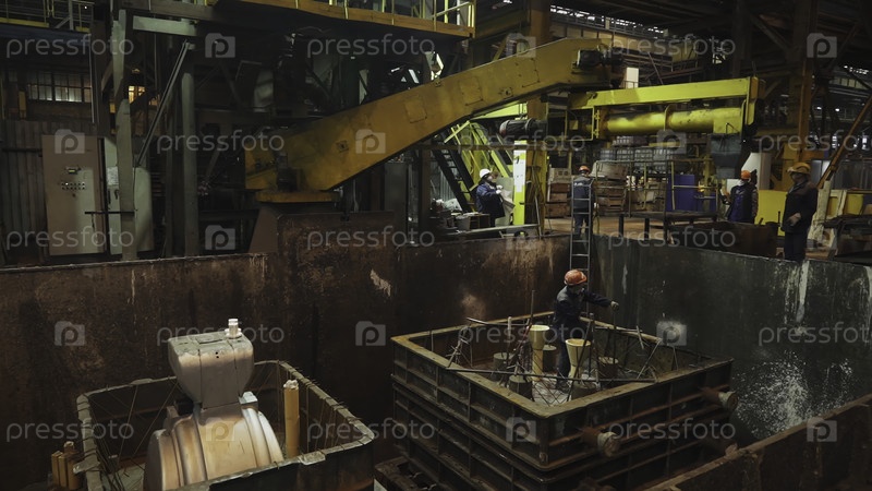 Работники литейной фабрики готовят формы для металлического литья